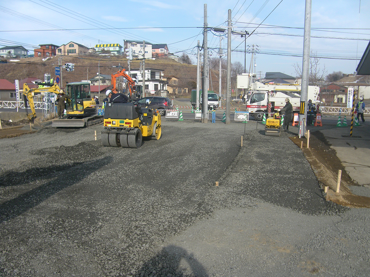 | 工事内容 | 仮設工 1式 工事用道路工 1式 工事用道路盛土 V=73m3、仮設舗装 A=1,021㎡(車道)、仮設舗装 A=4321㎡(歩道) 仮橋工 1式 橋長 L=17.0m、有効幅員 W=16.0m |